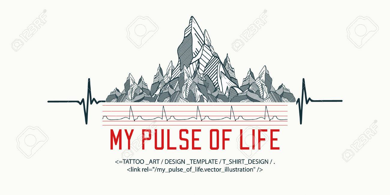 Mountains Tattoo Art T Shirt Design Slogan My Pulse Of Life